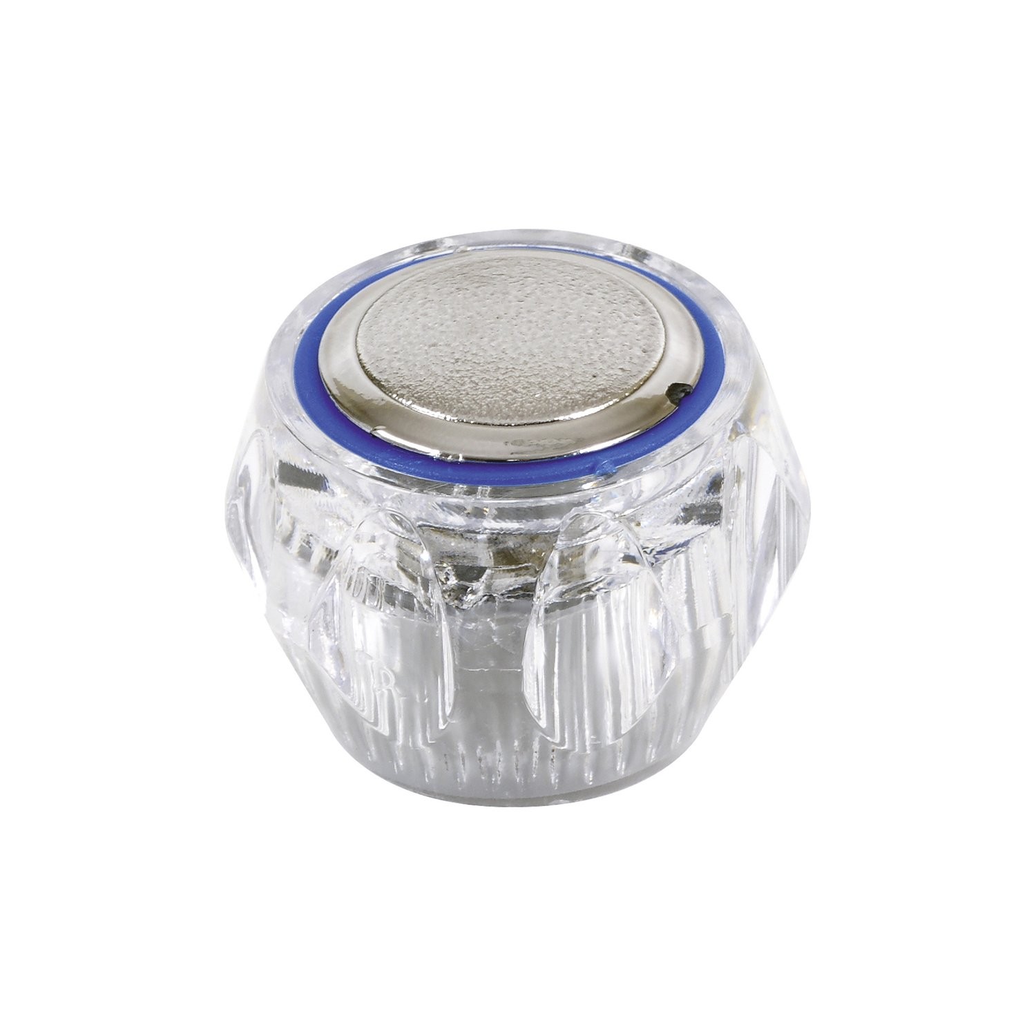Pokrętło do baterii przeźroczyste. Część zamienna, przeznaczona do głowic baterii czerpalnych dwuuchwytowych (umywalkowych, zlewozmywakowych, wannowych). Charakteryzuje się wysoką estetyką wykonania i trwałością. Podkładka niebieska oznacza zimną a czerwona ciepłą wodę.