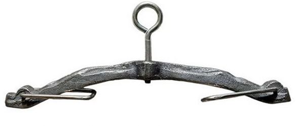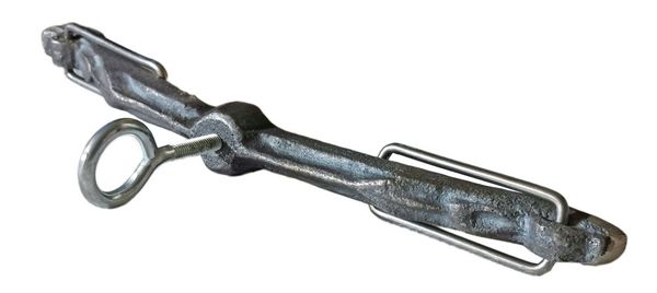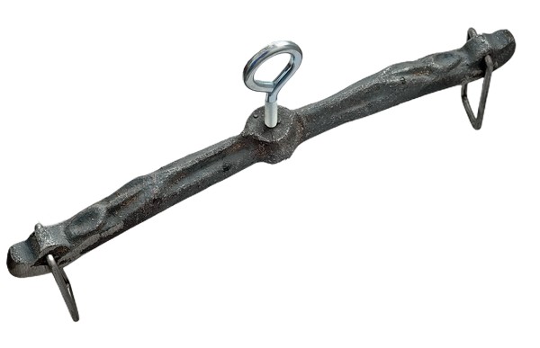 Belka, uchwyt żeliwny do kociołka żeliwnego ze śrubą dociskową zakończoną kółkiem.