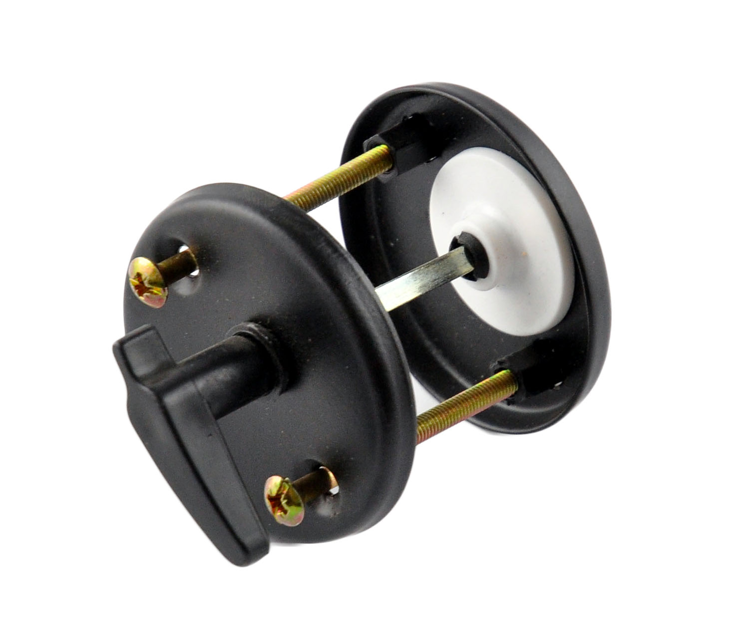 Blokada do drzwi WC wykonana z metalu z elementami plastikowymi, malowana proszkowo.