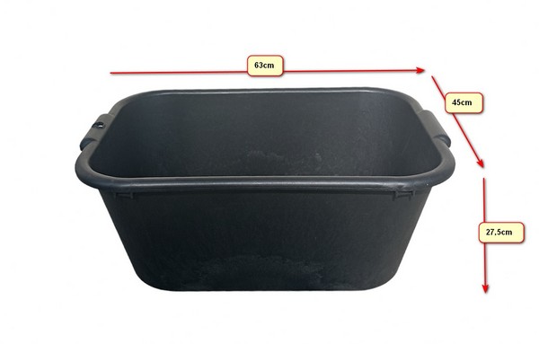 Wykonana z czarnego, mocnego plastiku, odpornego na działanie niskich i wysokich temperatur, solidna i trwała. Dodatkowo posiada wzmocnione dno.Wyposażona jest w wygodne do przenoszenia uchwyty.