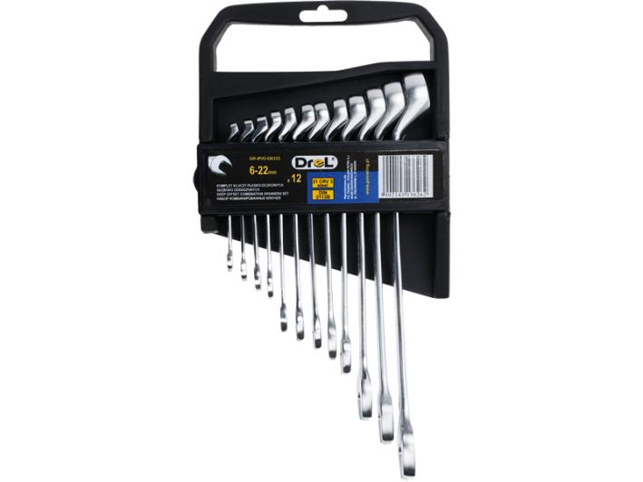 Klucze płasko-oczkowe głębokie 12 sztuk Drel