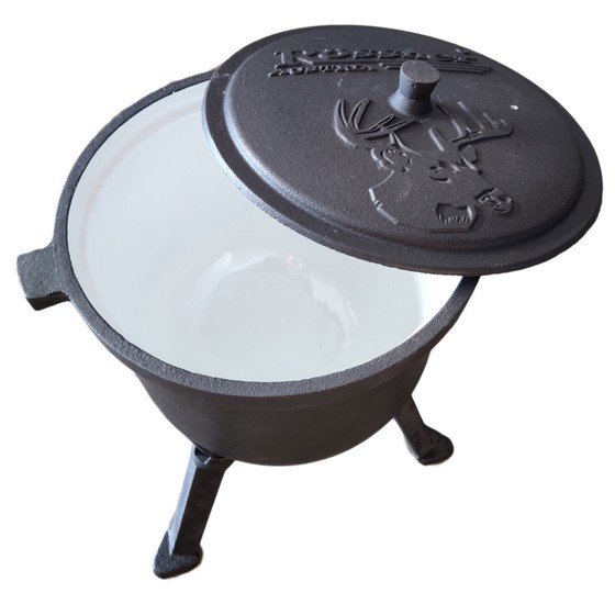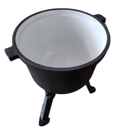Kociołek żeliwny został wykonany z wysokiej jakości odlewu. Jest mocny i solidny. Można go zawiesić nad ogniskiem lub postawić bezpośrednio na nim, a dzięki odkręcanym nóżkom również na piecu, na palniku gazowym lub w piekarniku.