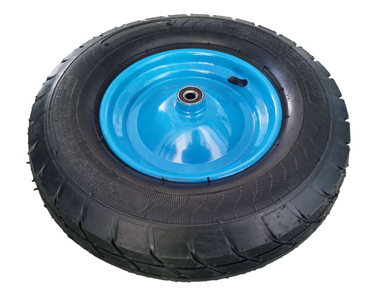 Koło taczki pompowane z metalową felgą. Pasuje do każdego rodzaju taczek budowlanych. Koło gładkie z oponą o wytrzymałości 6PR. Wysoka jakość wykonania.