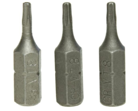 Komplet trzech sztuk końcówek TORX T10 firmy Condor do wkrętarek. Utwardzane, hartowane CrV.