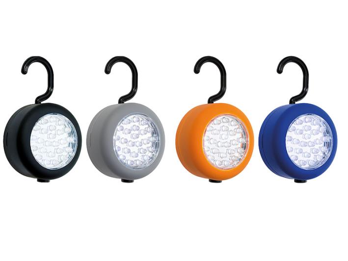 Latarka przenośna LED firmy Drel. Posiada 24 diody, uchwyt do zawieszenia oraz magnes.