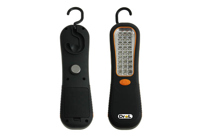 obrotowy hak mocujący do zawieszenia lampy oraz silny magnes z tyłu do