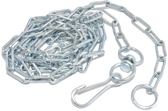 Łańcuch dla psa wykonany ze stali ocynkowanej. Łańcuch posiada na końcach okrętkę i spinacz.