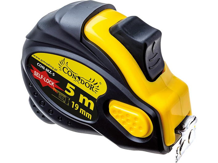 Miara zwijana gumowa firmy Condor. Pokryta specjalną substancja zapobiegającą ścieraniu się podziałki. Posiada gumową osłonę. Miary stosowane są w budownictwie, pracach domowych i warsztatowych.