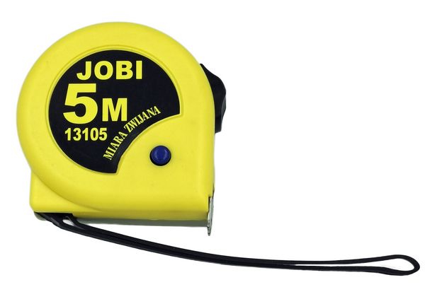 Miara zwijana firmy JOBI. Została wyposażona w przycisk "STOP" oraz blokadę stałą taśmy. Po zwolnieniu blokady następuje automatyczne zwijanie taśmy.