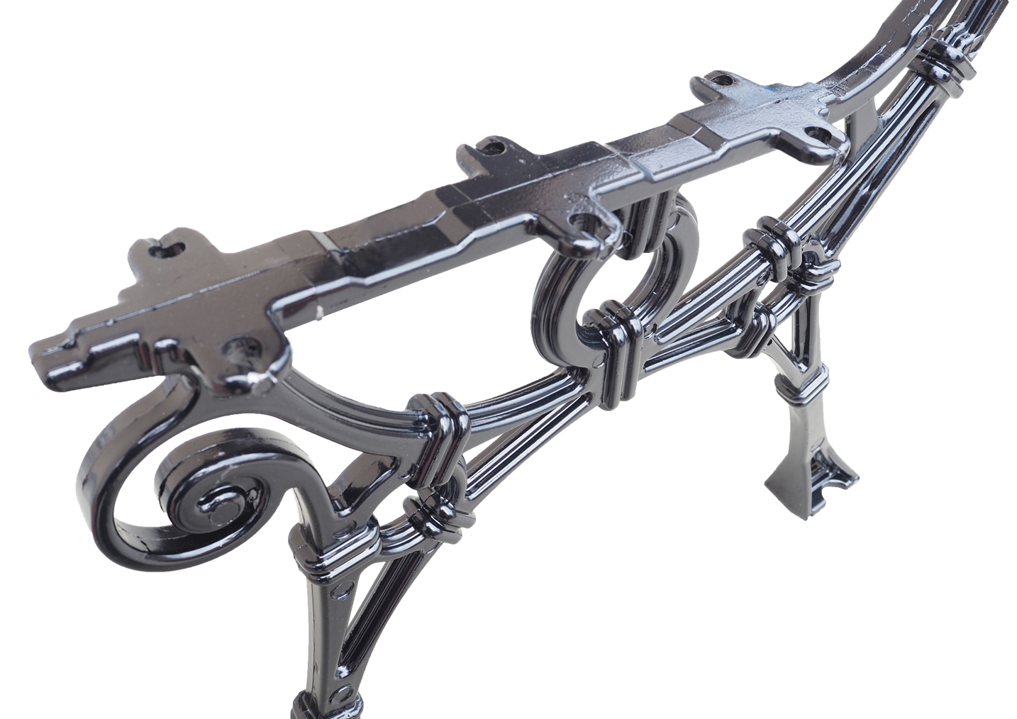 Noga do ławek wykonana z aluminium, zabezpieczona czarną farbą antykorozyjną. Nowoczesny wzór, wyprofilowany model. Solidne i trwałe wykonanie.