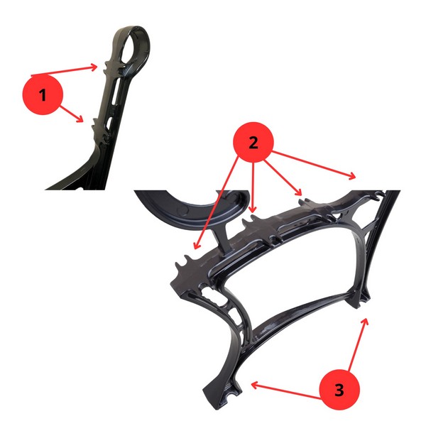 Noga przygotowana jest pod montaż 6 desek, 2 na oparcie i 4 na siedzisko. Nie ma potrzeby żadnego nawiercania i robienia otworów. Otwory są wymierzone i gotowe pod konstrukcję.