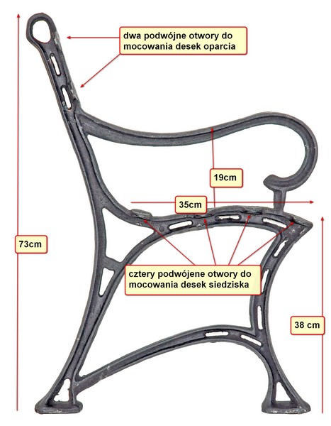 Noga do ławki wykonana z najwyższej jakości żeliwa. Żeliwo odznacza się znakomitą wytrzymałość, wysoką odporność na ścieranie i skutecznością w tłumieniu drgań. Produkty żeliwne latami zachowują swoją pierwotną użyteczność i trwałość.