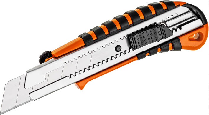 Nożyk z ostrzem firmy Jufisto. Posiada obudowę z tworzywa sztucznego. Przydatny podczas prac remontowych, ogólnobudowlanych i domowych.