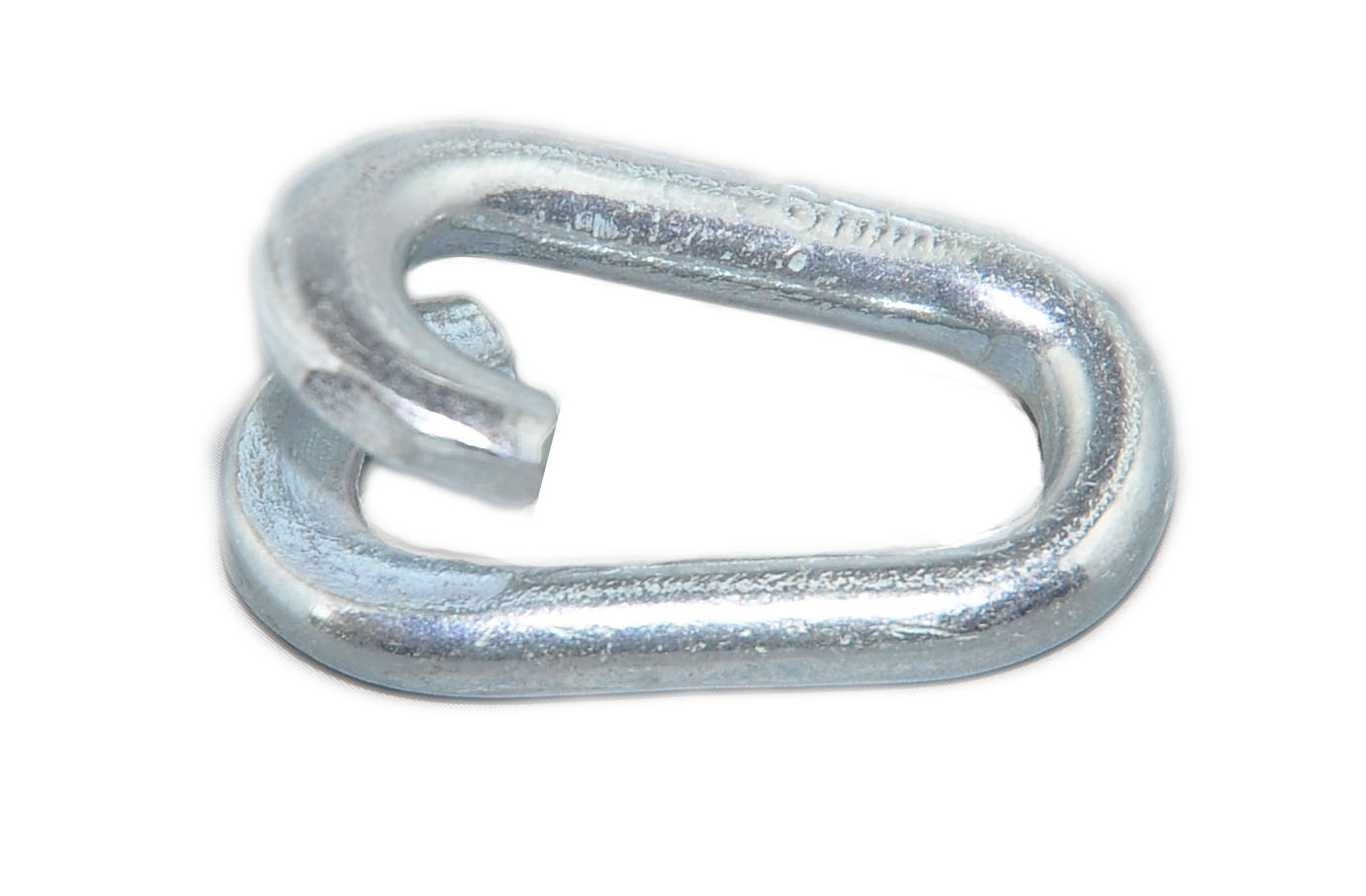Ogniwo łańcucha, zaklepywane, ocynkowane. Ogniwa zaklepywane stosowane są do szybkiego łączenia łańcucha. Oczko łańcucha wkłada się w ogniwo a następnie zaklepuje.