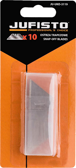 Ostrza trapezowe firmy Jufisto. Stosowane są z nożami z ostrzem stałym lub chowanym. W nożach wykorzystywana jest jedna ze stron trapezu, po stępieniu wystającej części, ostrze odwraca się w nożu i do dyspozycji użytkownika jest ponownie ostra krawędź. Ostrza trapezowe przeznaczone są do ciężkich prac.