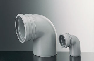 Kolano wykonane z PCV do odprowadzania nieczystości i ścieków w systemach kanalizacyjnych i instalacji do wody deszczowej.