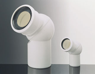 Kolano nastawne wykonane z PCV do odprowadzania nieczystości i ścieków w systemach kanalizacyjnych i instalacji do wody deszczowej.