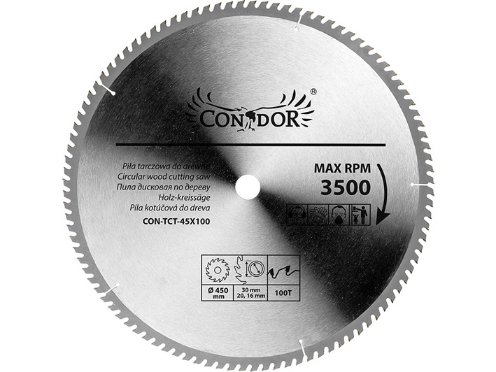 Piła tarczowa do pilarki firmy Condor. Tarcza przeznaczona do cięcia drewna zarówno twardego, jak i miękkiego, płyt gipsowych, wiórowych i materiałów izolacyjnych.