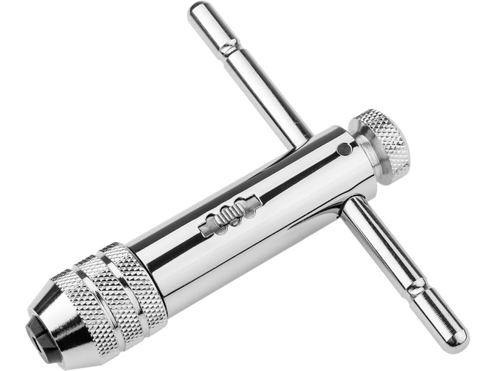 Pokrętło z grzechotką do gwintowników firmy Drel. Posiada regulowane rozwarcie szczęk w zależności od wielkości gwintownika. Nastawne w lewo i prawo lub blokowane na stałe. Idealne do gwintowania w miejscach trudno dostępnych.