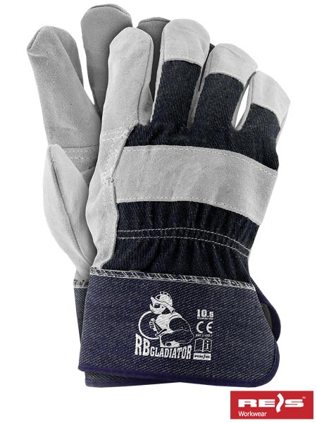 Rękawice ochronne wzmacniane skórą bydlęcą dwoinową z przeszyciem na dłoni. Drelich i usztywniany mankiet w kolorze granatowym. Od wewnątrz wypodszewkowane, co podnosi komfort użytkowania. Popularnie stosowane do ogólnych prac mechanicznych. Wykorzystywane w budownictwie oraz przemyśle ciężkim.