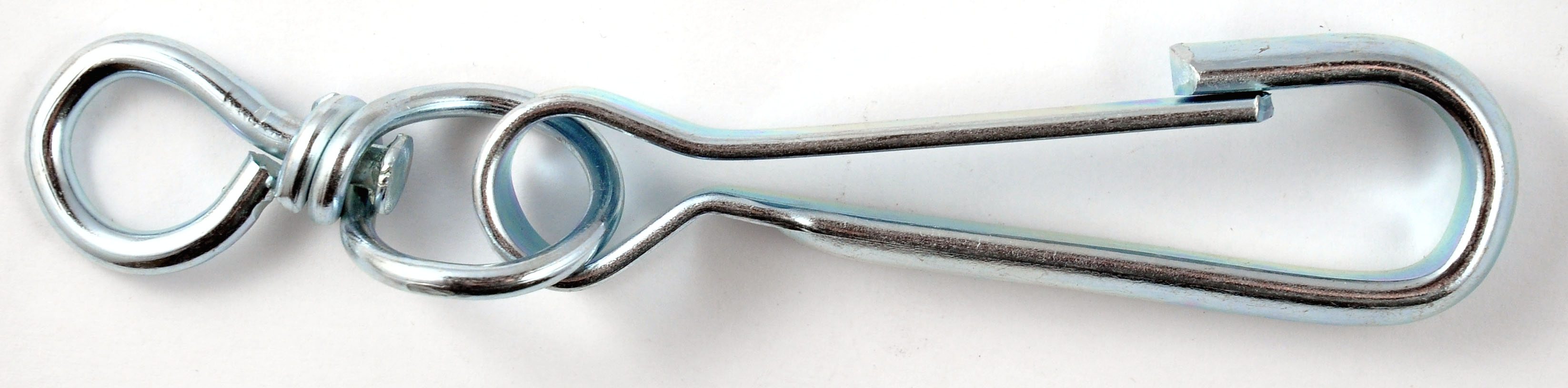 Karabinek do łańcucha ocynkowany. Posiada okrętkę zapobiegającą skręcaniu się łańcucha.