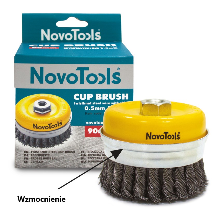 Szczotka czołowa splatana z drutu stalowego Novotools 0.5mm, M14x2