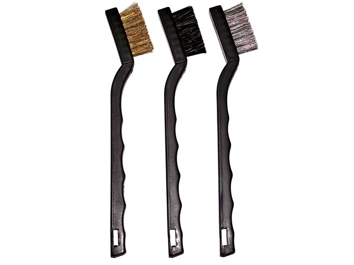 Zestaw trzech szczotek firmy Condor z włosiem: stalowym, mosiężnym i nylonowym. Szczotka stalowa: do usuwanie rdzy, powłok lakierniczych. Szczotka mosiężna: do delikatnej i równomiernej obróbki, wykańczająca powierzchnię z mosiądzu, miedzi i innych materiałów nieżelaznych, usuwanie lakierów, rdzy, czyszczenie lutów. Szczotka pracuje beziskrowo. Szczotka nylonowa: duża elastyczność włosia umożliwia pracę w trudno dostępnych miejscach, stosowana głównie do czyszczenia, matowania i satynowania obrabianych powierzchni.