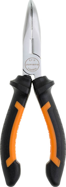 Szczypce wydłużone, wygięte firmy Jufisto hartowane indukcyjnie.