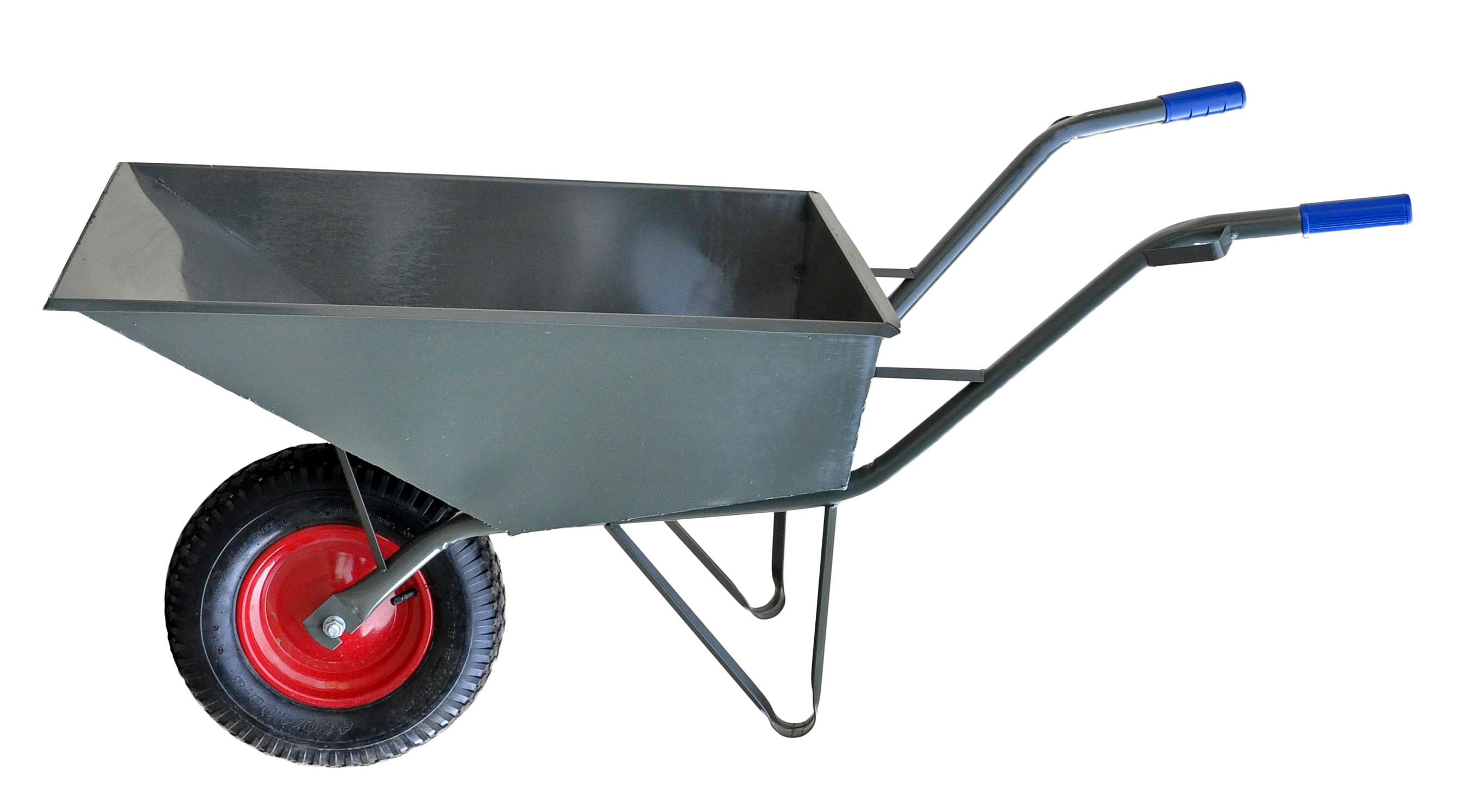 Taczka o pojemności 90 litrów i ładowności 150kg, posiada wspornik pod koszem i koło pompowane dwupłócienne z łożyskiem.