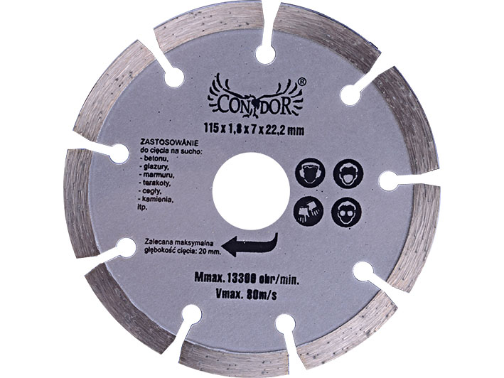 Tarcza diamentowa, segmentowa firmy Condor. Przeznaczona do cięcia na sucho materiałów tj. beton, glazura, marmur, terakota, cegła, kamień itp.