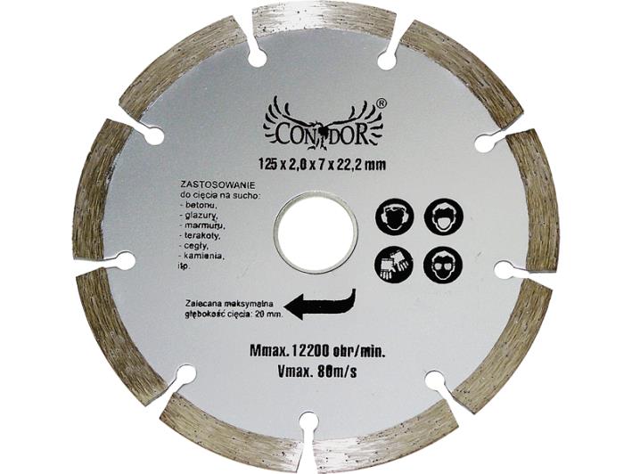 Tarcza diamentowa, segmentowa firmy Condor. Przeznaczona do cięcia na sucho materiałów tj. beton, glazura, marmur, terakota, cegła, kamień itp.
