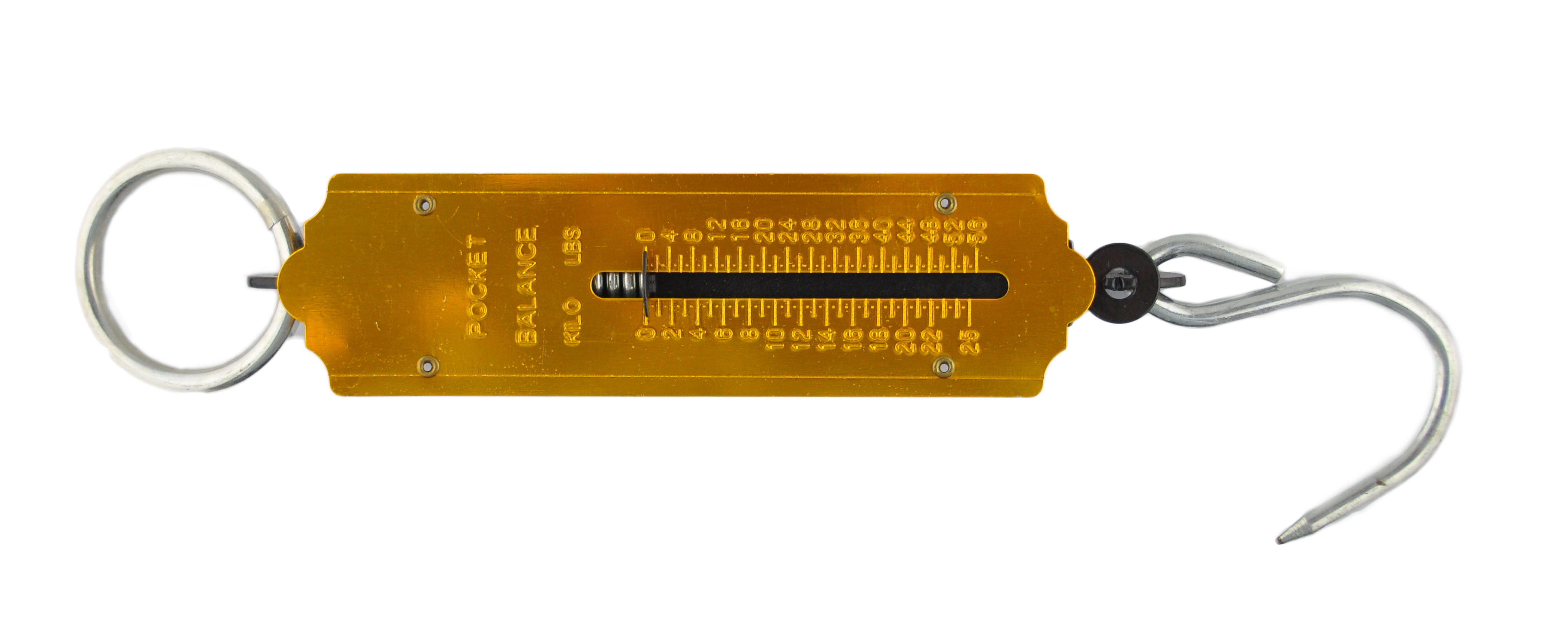 Waga sprężynowa o udźwigu do 12,5kg. Korpus wykonany z lakierowanej blachy stalowej, panel frontowy z polerowanej blachy stalowej, hak z chromowanego drutu stalowego.