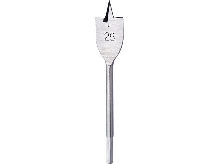 Wiertło łopatkowe firmy Condor wykonane ze stali. Wiertło przeznaczone do obróbki drewna. Część robocza jest spłaszczona i posiada dwie proste krawędzie skrawające. Chwyt ma profil sześciokąta dla pewnego zamocowania w uchwycie wiertarskim.