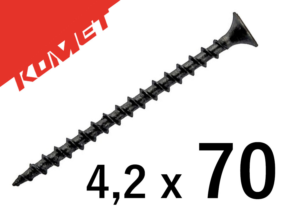 Tradycyjny wkręt fosfatowany czarny z łbem stożkowym przeznaczony do montażu różnych materiałów, a w szczególności płyt gipsowo-kartonowych do elementów drewnianych i drewnopochodnych. Powłoka fosfatowana zapewnia wysoką odporność na korozję i uszkodzenia mechaniczne.