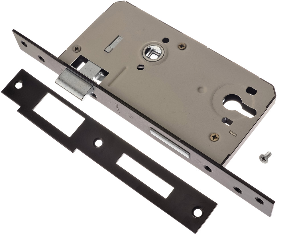 Zamek bramowy duży firmy JANIA. Zamek wpuszczany, wkład prawy lub lewy. Zamki wpuszczane przeznaczone są do montowania w środku drzwi, we wcześniej przygotowanych do tego otworach. Po zamknięciu zamka jego rygiel i zapadka wchodzą do okucia/zaczepu zamontowanego w futrynie. Do tego zamka należy dokupić wkładkę, która jest mocowana do zamka za pomocą jednej śruby. Zamek nie ma możliwości zamiany strony z lewego na prawy i odwrotnie.