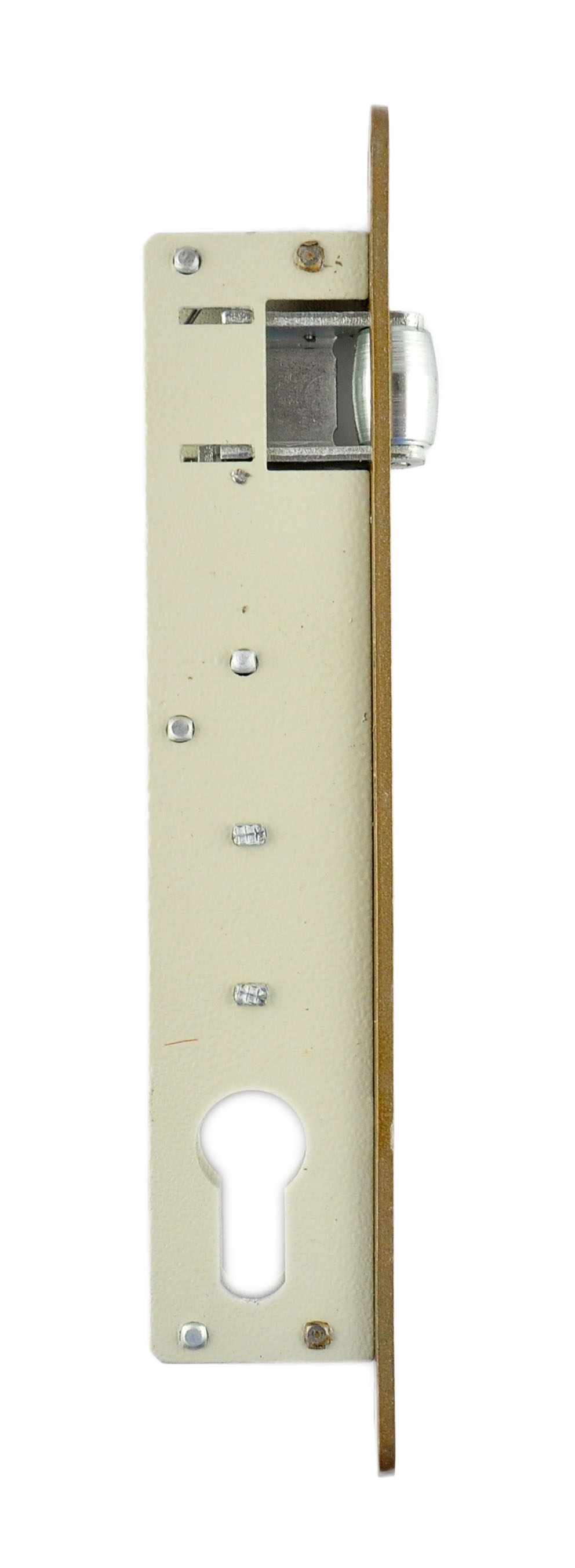 Zamek bramowy wąski firmy JANIA. Zamek typu "Rolka", wkład prawy lub lewy. Zamki wpuszczane przeznaczone są do montowania w środku drzwi, we wcześniej przygotowanych do tego otworach. Po zamknięciu zamka jego rygiel i zapadka wchodzą do okucia/zaczepu zamontowanego w futrynie. Zamek nie ma możliwości zamiany strony z lewego na prawy i odwrotnie.