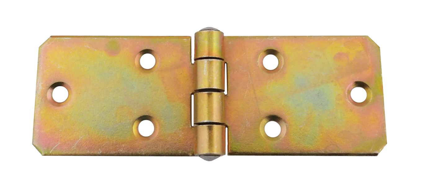 Zawias skrzyniowy żółty ocynkowany, wykonany z blachy 2mm. Idealny do skrzyń i kufrów.