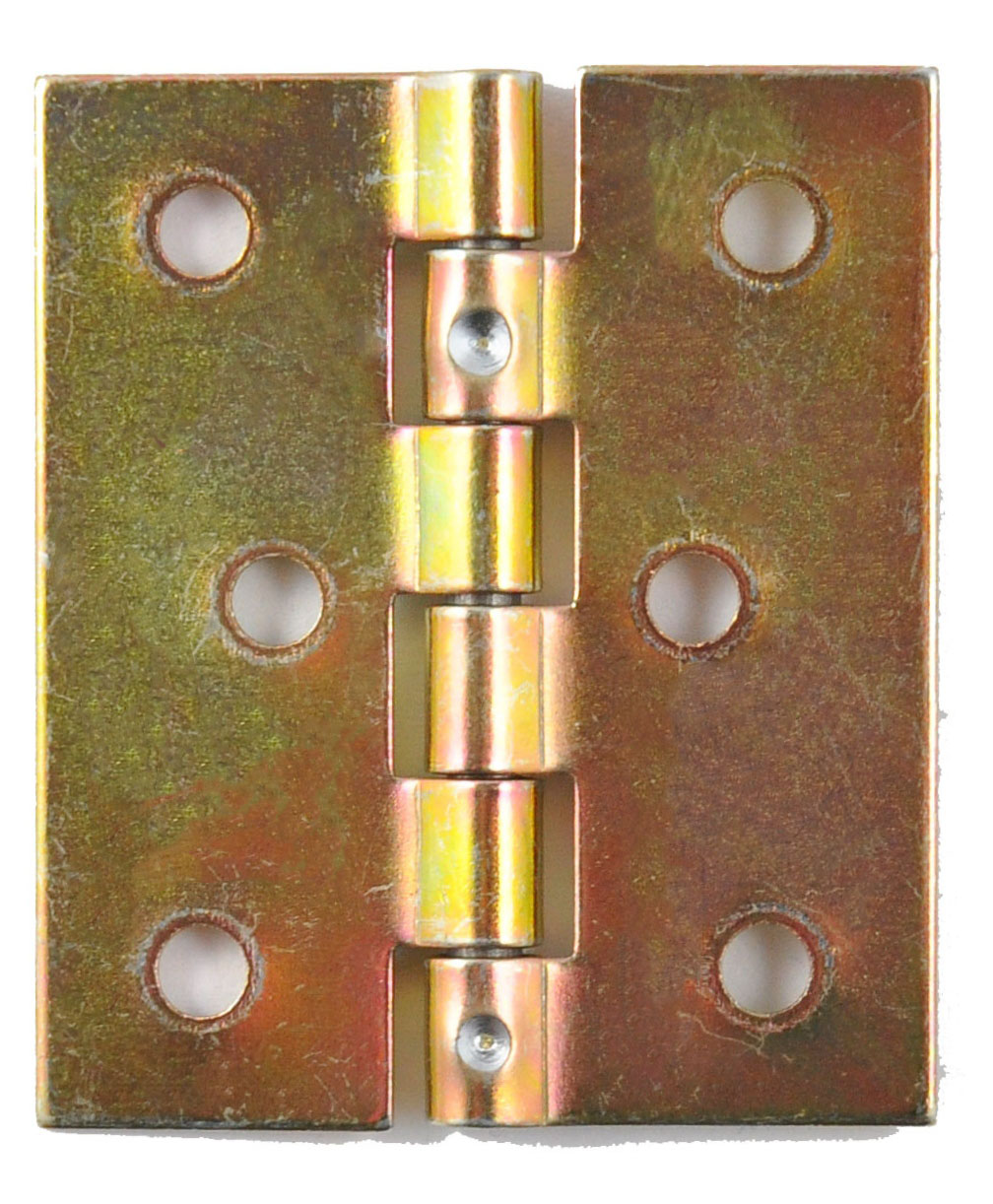 Zawias splatany żółty ocynkowany, wykonany z blachy 1mm. Za pomocą praktycznego zawiasu splatanego z łatwością można przymocować lekką furtkę czy drzwiczki meblowe w domu.