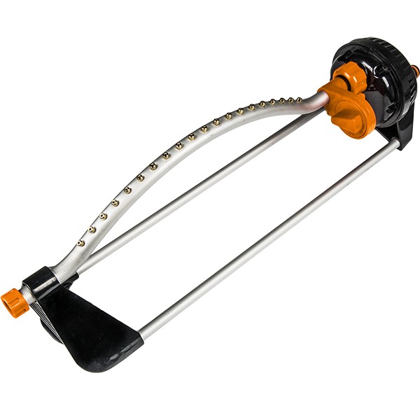 Zraszacz oscylacyjny, wahadłowy. Posiada aluminiowe ramię
