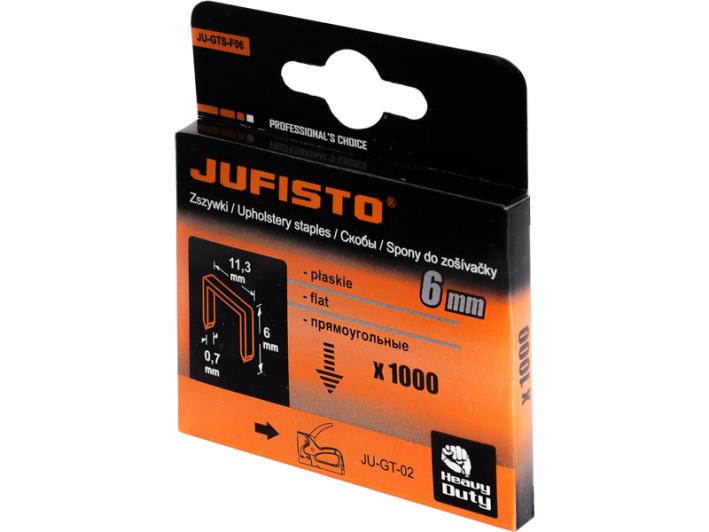 Zestaw tysiąca uniwersalnych sztuk zszywek tapicerskich firmy Jufisto. Zszywki pasują do większości rodzajów zszywaczy.